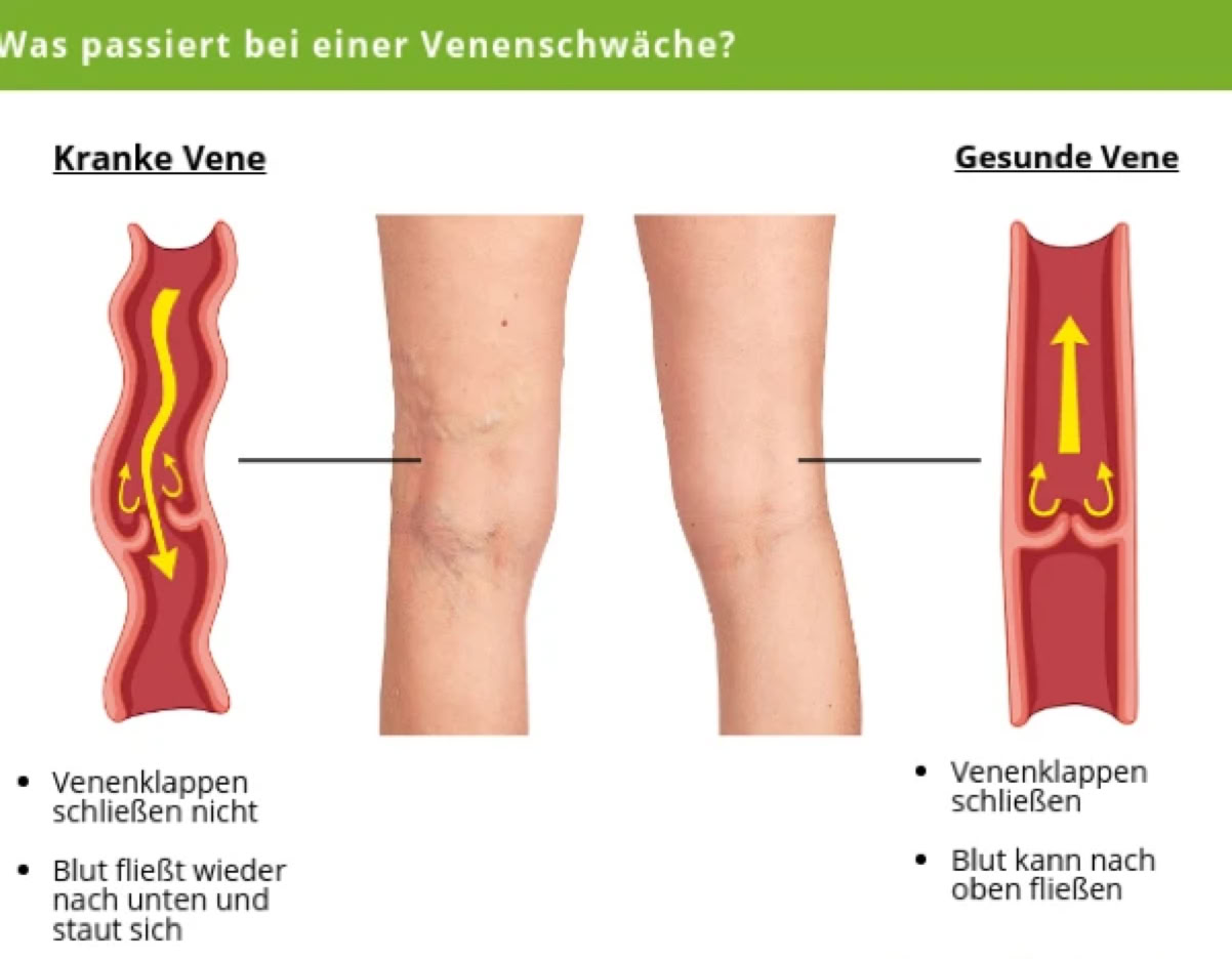 In weiterer Folge können Ekzeme und "offene Beine" oder auch Thrombosen entstehen.